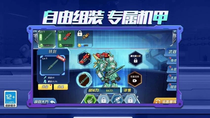 4、持续挑选适配的装甲零件来改装机甲,如此你便能成为名副其实的机甲之王。
