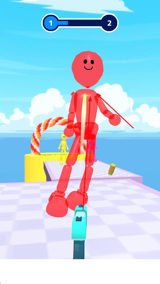 2. 当射击红色小人后,小人会出现变化。在此过程中,要留意上方的进度条,这是为顺利完成关卡任务打基础。