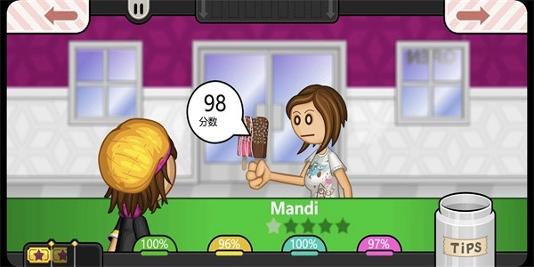 1. 老爹冰棒店十分重视顾客间的互动,玩家得凭借优质服务与美味冰棍来俘获顾客的心。