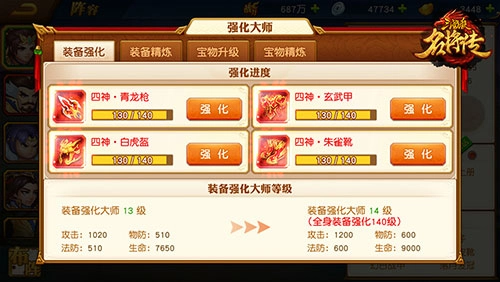 4、当一名武将的四个装备部件均强化至特定等级时,就能激活强化大师效果,从而获取额外的属性加成。