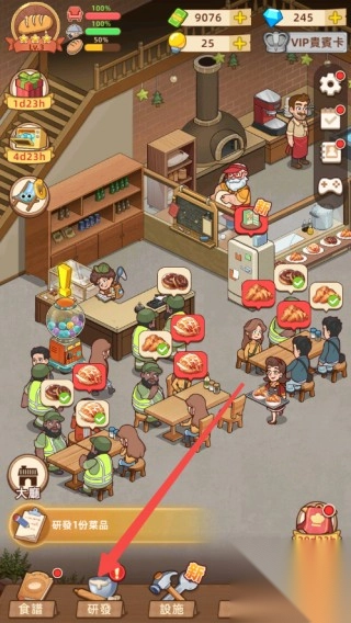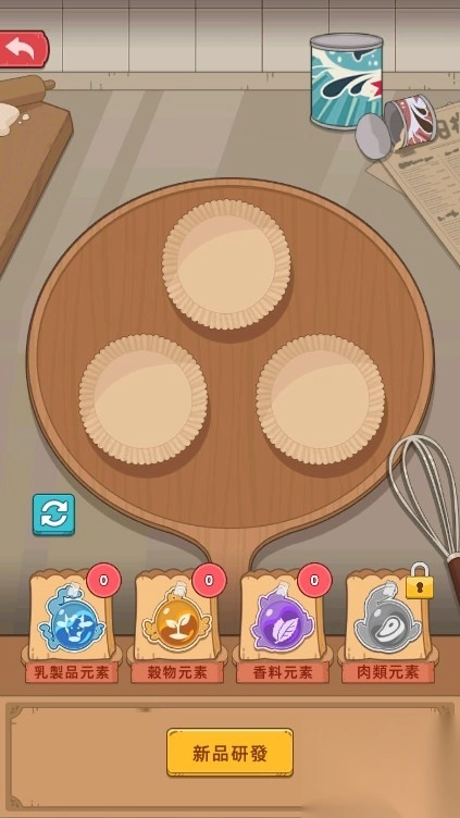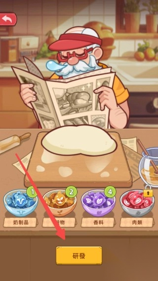1. 打开并进入《我的面包房物语》手机中文版后,点击屏幕下方的“研发”玩法,从而进入研发界面。