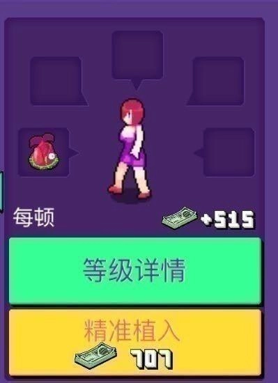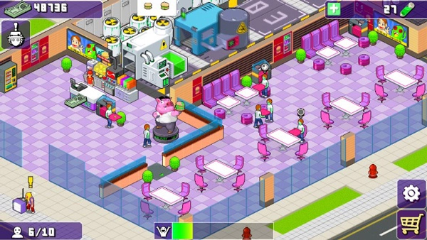 顾客在食用大量“食物”后,会随机发生变异并进化至下一阶段,最终达到“完全满意”的状态时,会化作一滩绿色的辐射液体,并掉落大量金钱。
