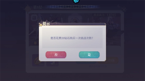 2、首次挑战每一层无需消耗次数。对于已通关的楼层,可进行扫荡操作,每日拥有2次免费扫荡次数。