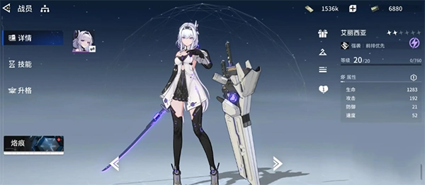 拥有3电阵容后,为增强队伍在不同环境下的应对能力,不妨搭配物理输出角色“艾丽西亚”。她属于纯物理直伤输出,无需顾虑各类克制关系造成的负面影响。而且艾丽西亚是开服即送的角色,满星培养难度较低。其单体伤害倍率可达392% + 150%,暴击率极高,还具备吸血能力,生存方面无需过多担忧。