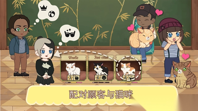 6、下一步要给猫咪匹配顾客,点击场景里的顾客角色来完成配对。