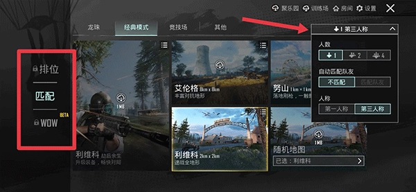 3、接着依据个人喜好挑选地图,点击右上角还能够选择单人、双人以及四人组队模式。