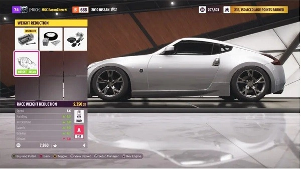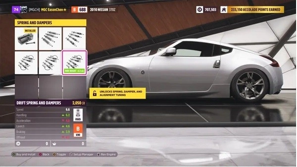 近两年来,伴随着各类漂移赛事的热度逐步攀升,极限竞速也越发重视漂移这一赛车技巧。 那么,究竟什么是漂移呢?漂移并非等同于失控。那种因车辆打滑致使轮胎空转,与地面摩擦产生烟雾的情况,并不算是漂移。真正的漂移动作,从开始起飘,到进入弯道,再到驶出弯道,整个过程都是能够被控制的。 在着手练习漂移之前,我们还需对车辆进行改装。接下来,小编以Nissan 370Z为例为大家讲解: