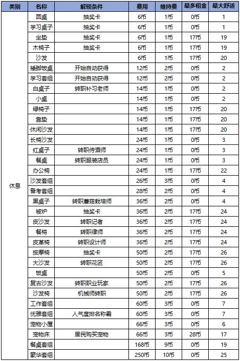 小编给大家整理了【所有家具的解锁条件、建造成本以及其能产生的效益】,方便大家参考。