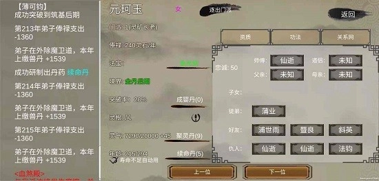 4、待单灵根弟子修炼至元婴前期后,利用上界支援刷出一名突破率为50%的弟子,随后进行保存操作。保存完毕,使用积攒的聚灵丹助其突破至元婴后期。需留意,倘若突破过程中出现失败情况,就重新读档,务必实现连续突破,如此能够节省聚灵丹。
