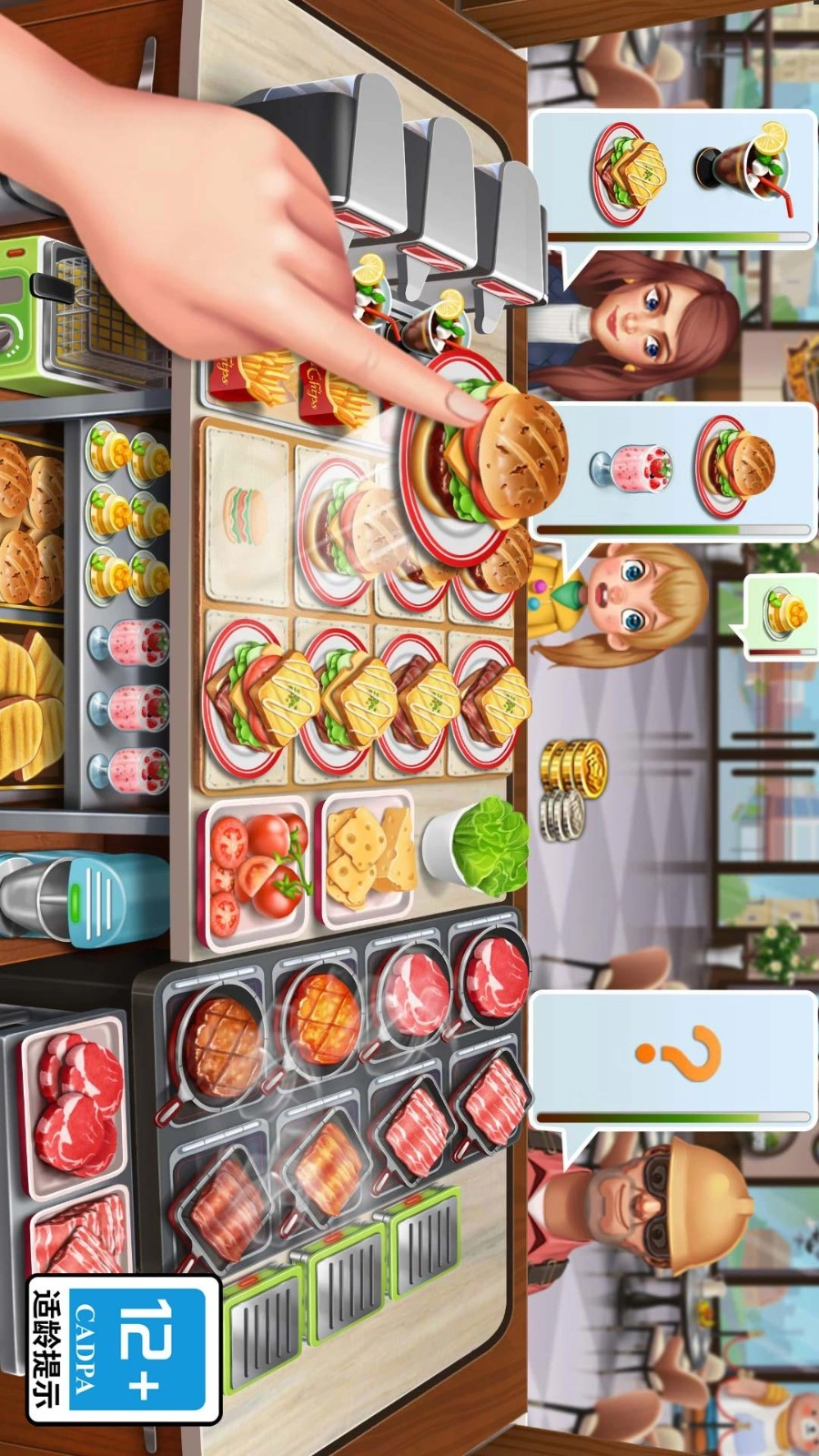 2、自行规划独特的烹饪系统,通过快速点击制作各类美食,从而赚取丰厚收益。在此过程中,需时刻集中精力,迅速解决各种难题。