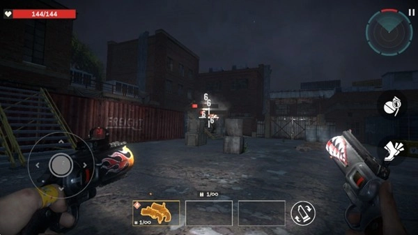 1. 开启游戏,随着故事情节推进,准备逃离并来到此地。前方出现僵尸,只有击败它们才能顺利通关。那该怎么操作呢?其实很简单,屏幕左侧区域用于移动靶心,只需把靶心对准僵尸即可。