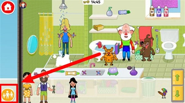 3. 借助左下角的家庭图标,能够便捷地管理角色,通过拖动人物进行互动,实现过家家这一趣味玩法。