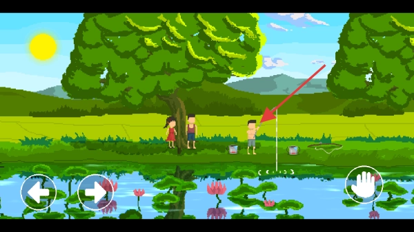 2. 在钓鱼场景中,操控角色与正在钓鱼的人进行互动,从而触发初期的剧情或者任务。