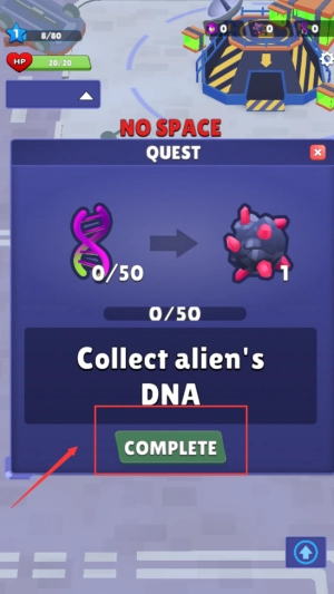 3、收集外星人DNA的任务,目前进度为0/50,仍需继续完成。