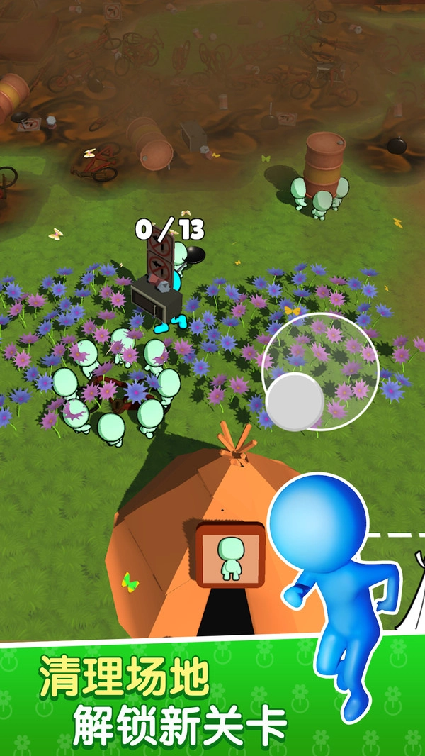 3. 当清理工作完成后,花丛里会浮现出一个圆形的虚拟按钮。此时,玩家必须手动点击该按钮,方可正式解锁下一个区域,进而推进关卡进程。