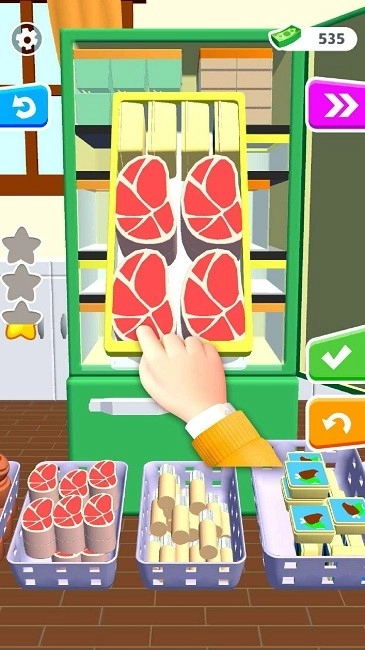 1. 基础操作简单直观,在屏幕上通过点击并拖动物品,将其角度调整好后放入冰箱,就能轻松完成收纳任务。