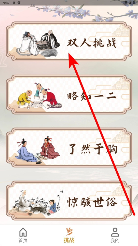 3、切换到挑战界面,选择双人挑战模式,邀请好友一起对战。在实时对弈过程中,运用自己所学的技巧,彼此切磋交流,不仅能增加五子棋对战的乐趣,还能迅速提升实战水平。