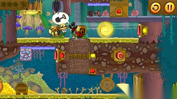 1. 操控鲍勃进行解谜:在屏幕上点击,以此操控鲍勃移动。借助场景里的木板、弹簧等物理装置来跨越障碍,通过触发诸如拉动绳索、旋转齿轮这类机关来开辟前行路径。