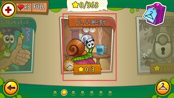 3、星星收集与换装:每一关都设定了3颗星星的收集目标,当你完成收集后,就能累积星星数量。一旦星星数量达到指定值,便可解锁鲍勃的全新服饰,尽情体验个性化装扮带来的乐趣。