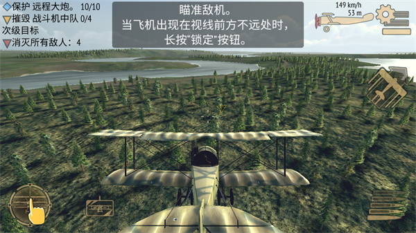 3、当敌方敌机在我方视线前方不远处时,长按锁定按钮;