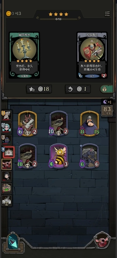 游戏开局阶段只需专注刷欲望泥潭这张牌就行:手里有1张泥潭的话,平稳度过前两关基本没问题,第三关运气不太差的话大部分情况也能过;要是有2张泥潭,直接推进到第四关完全没问题。 1到4关这段时间里,别去刷新商店,也别乱花钱浪费资源。如果遇到卡手的情况,可以拿一张入场牌或者成长牌给欲望泥潭加buff,但记住**只拿一张就够**,多了反而没必要。 所有操作都先憋着,等升到2星解锁特殊商店再说:一般2星商店里都会有“+1+1”的属性加成选项,看到了就果断选这个;要是没刷到“+1+1”,那就优先选加生命值的,其次再加攻击。 等2星商店阶段,就可以开始放心刷欲望泥潭和小树精了,这两张牌越多越好,哪怕把手里的钱花完都没关系。另外还有个关键:所有奖券都要留着,哪怕暂时不卡手也绝对别用,一定要等到五星、六星阶段再拿出来用。