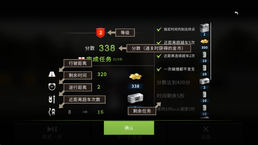近距离超车机制设有风险奖励,车辆间距越小,能获得的分数加成比例就越高。