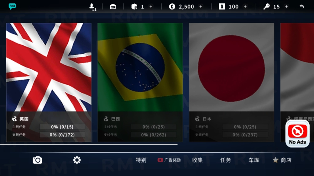 从提供的多个国家中选择一个,作为你的旅程起点。