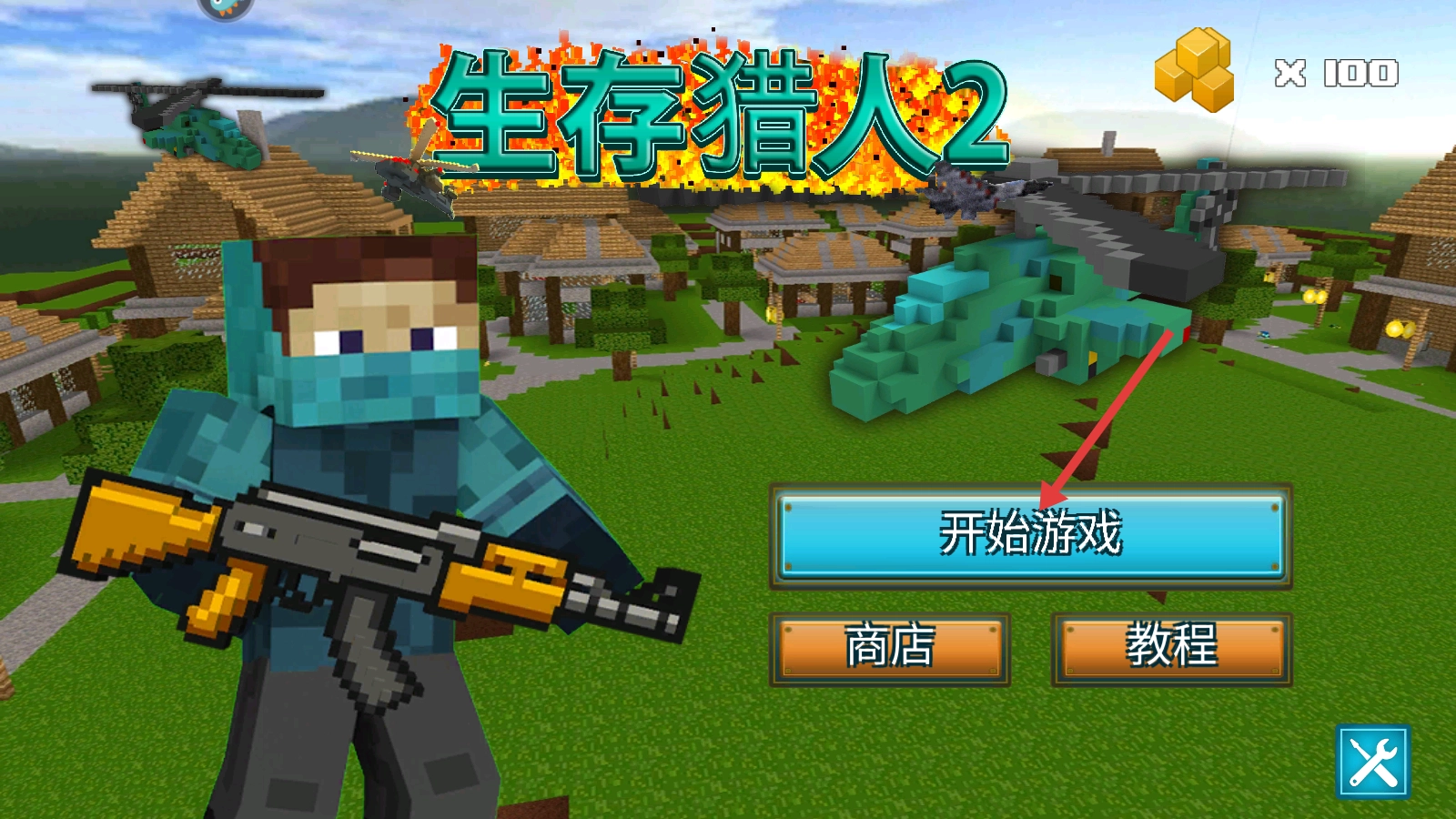 点击【开始游戏】即可进入《生存猎人2》,你可以先去看看【商店】和【教程】这两个功能,等熟悉了之后再开启游戏。