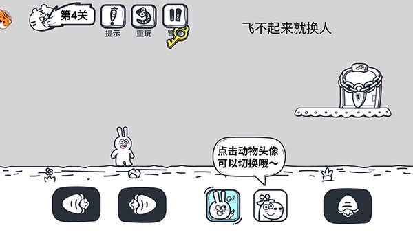 有的关卡需要多名动物伙伴相互配合才能通过,点击下方的头像就能切换角色。