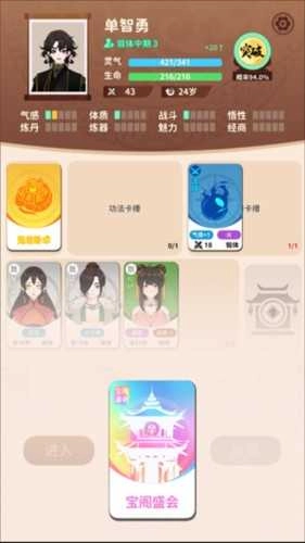宝阁盛会:可购买法器、功法、突破丹。利用“经商”属性可大幅降低价格,优先获取突破资源。