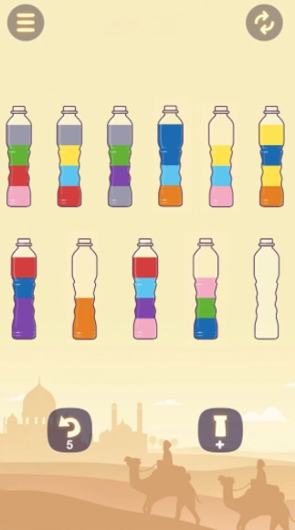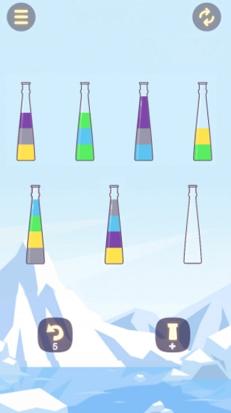 需要在规定步数里达成所有试管内液体颜色一致的目标,与此同时还得防止不同颜色的液体出现无法补救的混合状况。