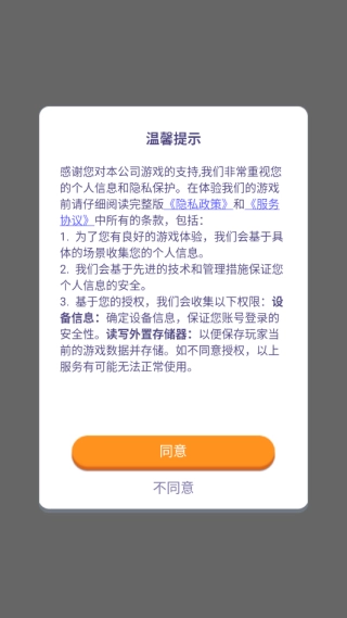 在开启游戏前,你得先同意对应的隐私政策与服务协议。
