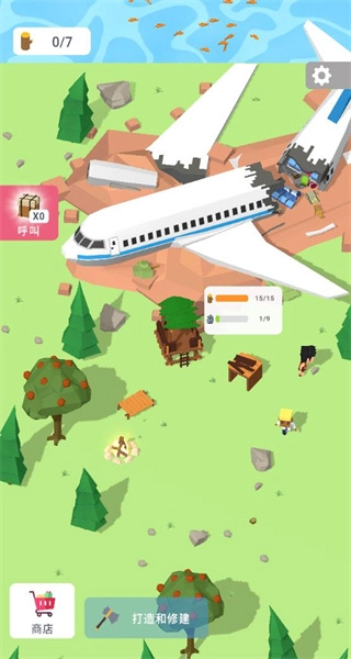 在飞机残骸这类场景里收集木材、石头之类的资源,与此同时借助场景中的树木、苹果等获取物资,为建筑的建造与升级提供资源方面的支撑。