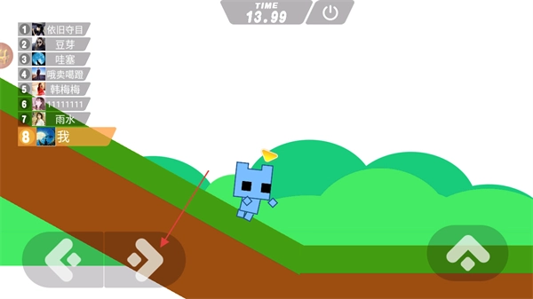 可以通过左下角的箭头按键来操控角色移动,要留意其他玩家也会对您的前进造成阻碍。