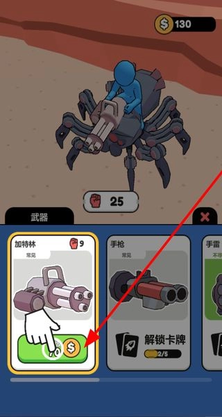 使用金币解锁加特林等武器,丰富战斗手段,增强攻击能力,助力击败敌人。