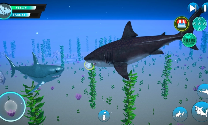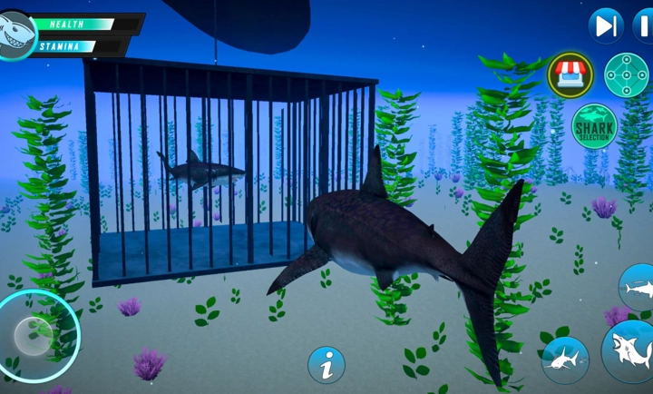 《鲨鱼水下生存模拟》是一款深海求生冒险游戏。当氧气濒临耗尽,四周又有凶猛掠食者环伺,你只能在这片幽暗的深渊中奋力挣扎,寻求生机。游戏会带你在幽蓝的珊瑚礁、沉没的舰船残骸以及神秘的海底洞穴之间穿梭。你需要收集散落的资源,制作求生工具和防御武器,与此同时,还要躲避或对抗那些拥有高智能和迅猛攻击力的巨型鲨鱼。