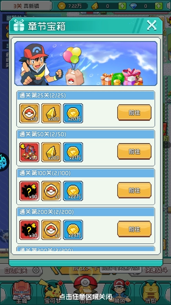 闯过特定关卡时,记得去领取对应的通关奖励。