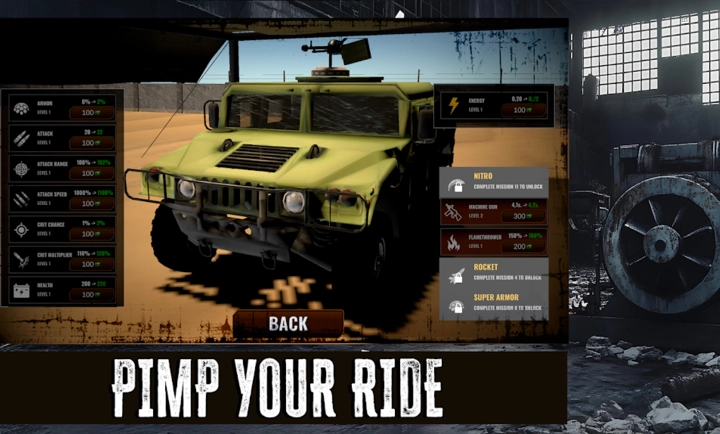 游戏采用真实物理引擎,精准模拟战车的行驶动态与碰撞效果;不同重量的僵尸撞击战车时,会依据自身重量差异,给车辆带来程度不一的损伤反馈。