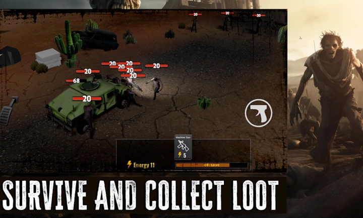 借助虚拟摇杆精准把控战车的移动路径与行进速度,在避开障碍物的同时维持对僵尸群的有效火力打击。