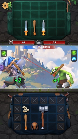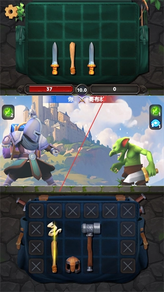 在战斗过程里,借助背包里的剑这类武器去攻击哥布林,武器属性不同会带来不一样的伤害效果,另外还要留意哥布林发起的反击攻击。