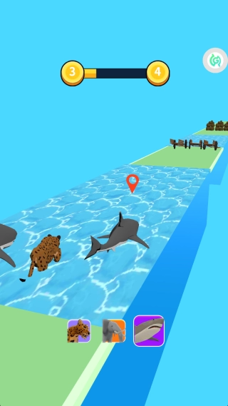 《动物大逃亡》是一款以动物形态变换为核心玩法的创新竞速闯关游戏。在布满创意障碍的多变赛道上,你需要依据实时出现的挑战,在陆地奔跑、水中游动与天空飞行这三种形态之间灵活切换。每种动物形态都具备独特的移动方式和特殊能力,像猎豹的爆发性加速以及飞鹰的空中滑翔。