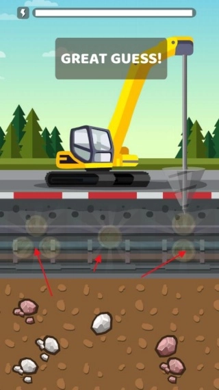 通过左右滑动屏幕来调整钻头的朝向,不断向下钻探就能获取黄金、钻石之类的资源。