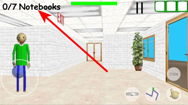 游戏的目标是收集7本笔记本,要留意左上角显示的收集进度提示。