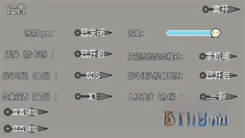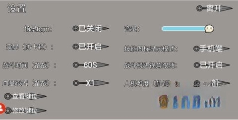 点击右上角设置按钮,玩家可以调整音量及键位设置。