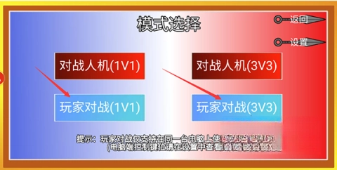 可依据需求挑选对战模式,“1v1”和“3v3”这两种模式可供选择。
