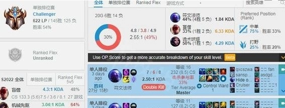 opgg目前无法查询LOL国服的战绩,建议使用国内的相关查询工具。