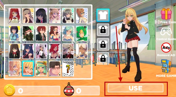 随后页面会跳转到角色挑选界面,选好心仪的角色后,点击屏幕右下角的USE按钮即可启用该角色。