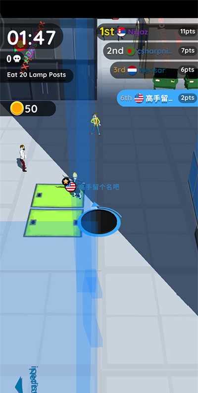 5. 刚开始时,建议选择较小的目标来吞噬,比如人类、垃圾桶或下水道井盖等小物品。