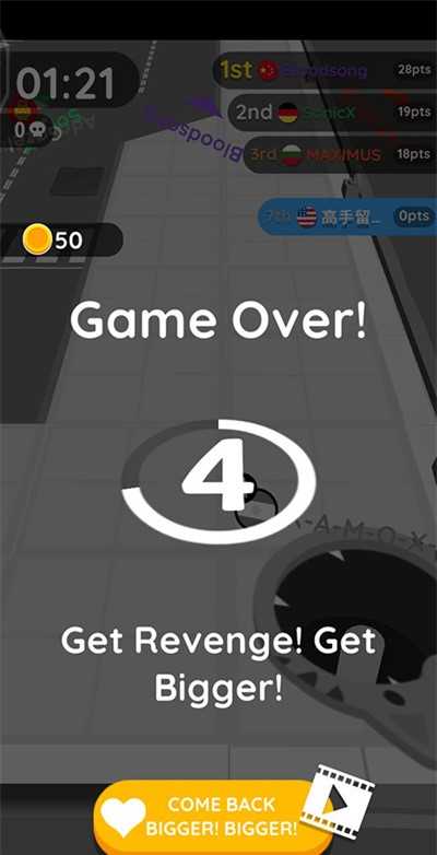 互相吞噬引起的激烈战争非常残酷,拥有灵活操纵手法的玩家才能活到最后,被别人吞噬了也没关系,大家可以多多练习操作手法,争取在下一轮游戏获胜。