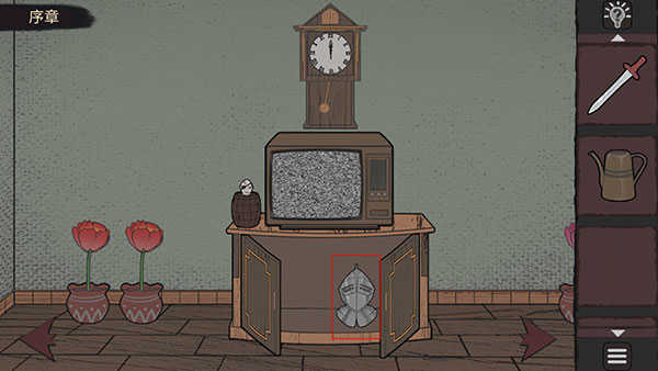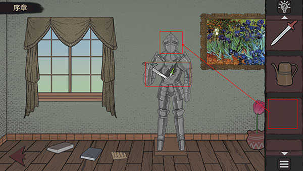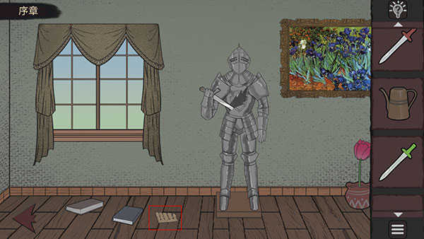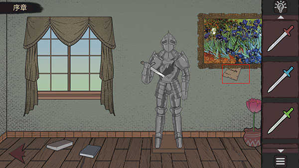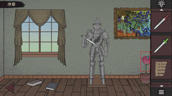 首先在第一个场景,打开抽屉拿到红色手柄剑;